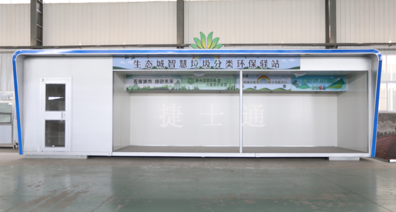 天津生態(tài)城垃圾分類驛站由捷士通崗?fù)S家設(shè)計生產(chǎn),已于六月底安裝完畢