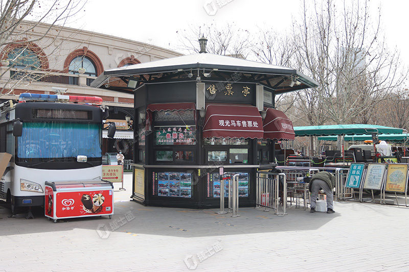 捷士通與法國設(shè)計師合作生產(chǎn)的天津市五馬路風(fēng)景區(qū)觀光小火車售票亭采用了現(xiàn)代歐式風(fēng)格,具有六角五邊形的獨特設(shè)計。每個窗口都可以用作辦公空間,使用了鍍鋅板材料,以確保其長久的使用年限。