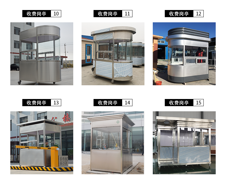 不銹鋼崗亭樣式:方形、單圓弧、雙圓弧、站臺、雙層頂等等