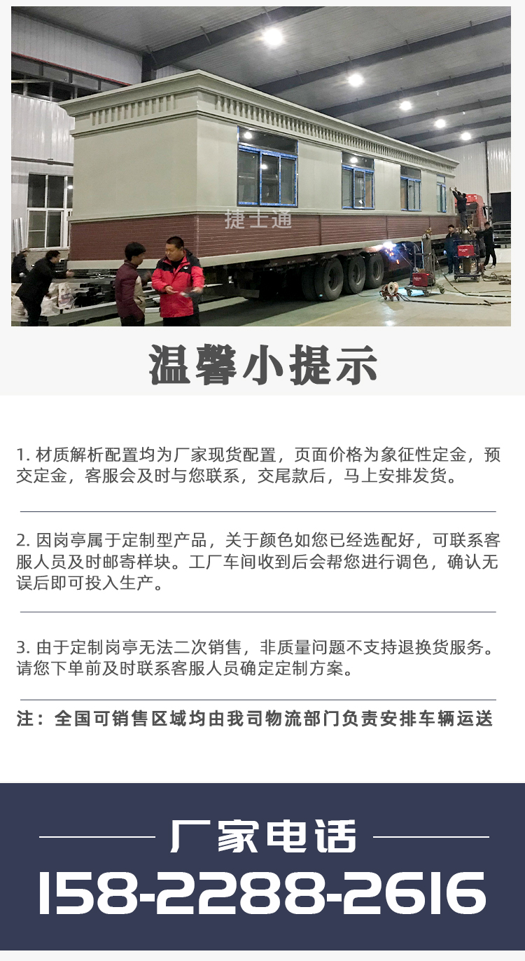 門衛(wèi)室一般建議定制較大尺寸的:2*3米、2.3*4米、3*6米,這是車間的常規(guī)尺寸,其他尺寸均可定制