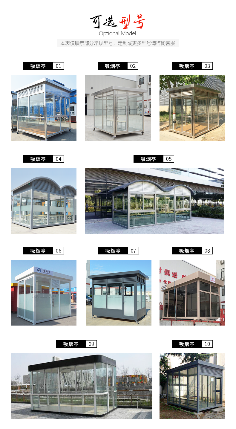 北京的工廠和大型的園區(qū)對(duì)吸煙這塊都是有要求的,要嚴(yán)防火災(zāi),嚴(yán)防火險(xiǎn),那么在工廠,#%和園區(qū)放置吸煙亭就是必不可少的了,尺寸方面要根據(jù)場(chǎng)地的請(qǐng)款和人員的數(shù)量而定,款式可以按照?qǐng)龅氐恼?qǐng)款來(lái)進(jìn)行定制。