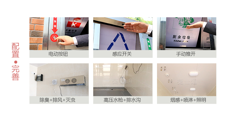 垃圾房?jī)?nèi)部的其他設(shè)施:超聲波驅(qū)鼠設(shè)備、蚊蠅誘捕設(shè)備、溫感干粉滅火器。