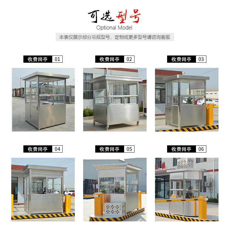 在選擇不銹鋼收費(fèi)崗?fù)さ臅r(shí)候,首先就是看看自己的工程是不是適合不銹鋼的收費(fèi)崗?fù)?,還是選用鍍鋅板氟碳漆的收費(fèi)崗?fù)?,因?yàn)椴讳P鋼的收費(fèi)崗?fù)ざ际窃珵橹鳎冧\板氟碳的一般是多色為主。