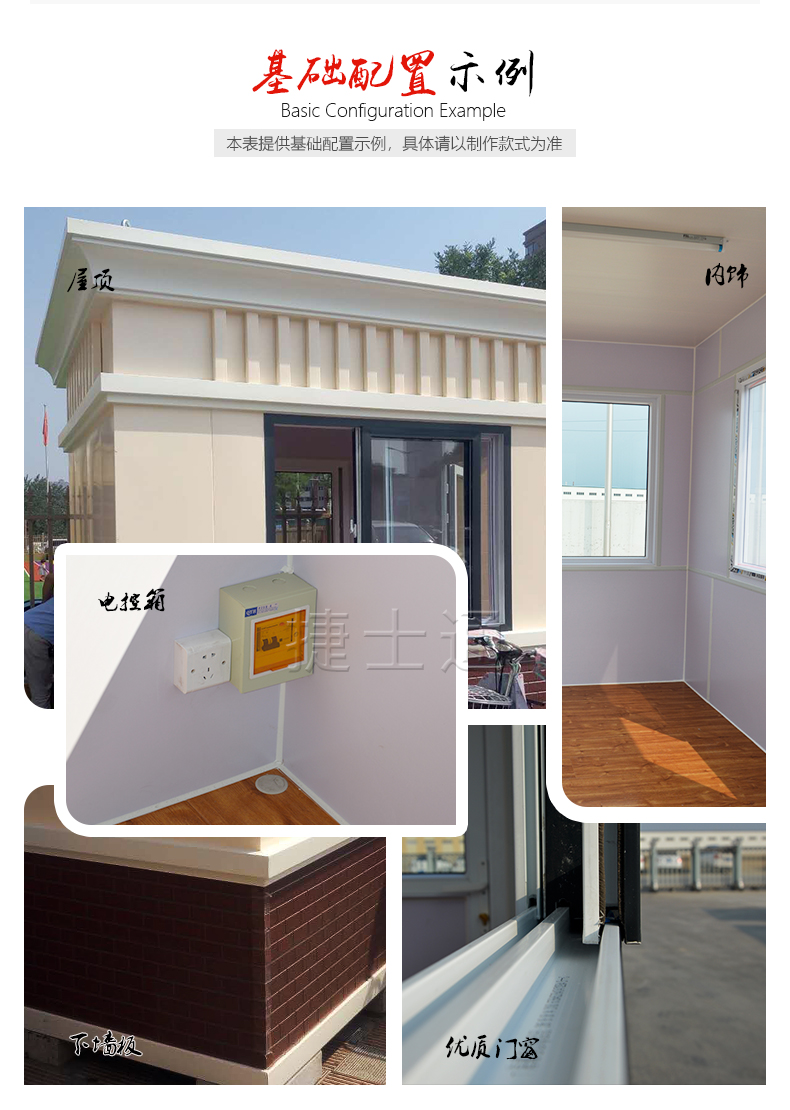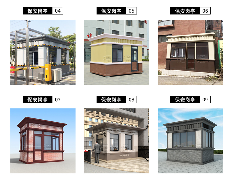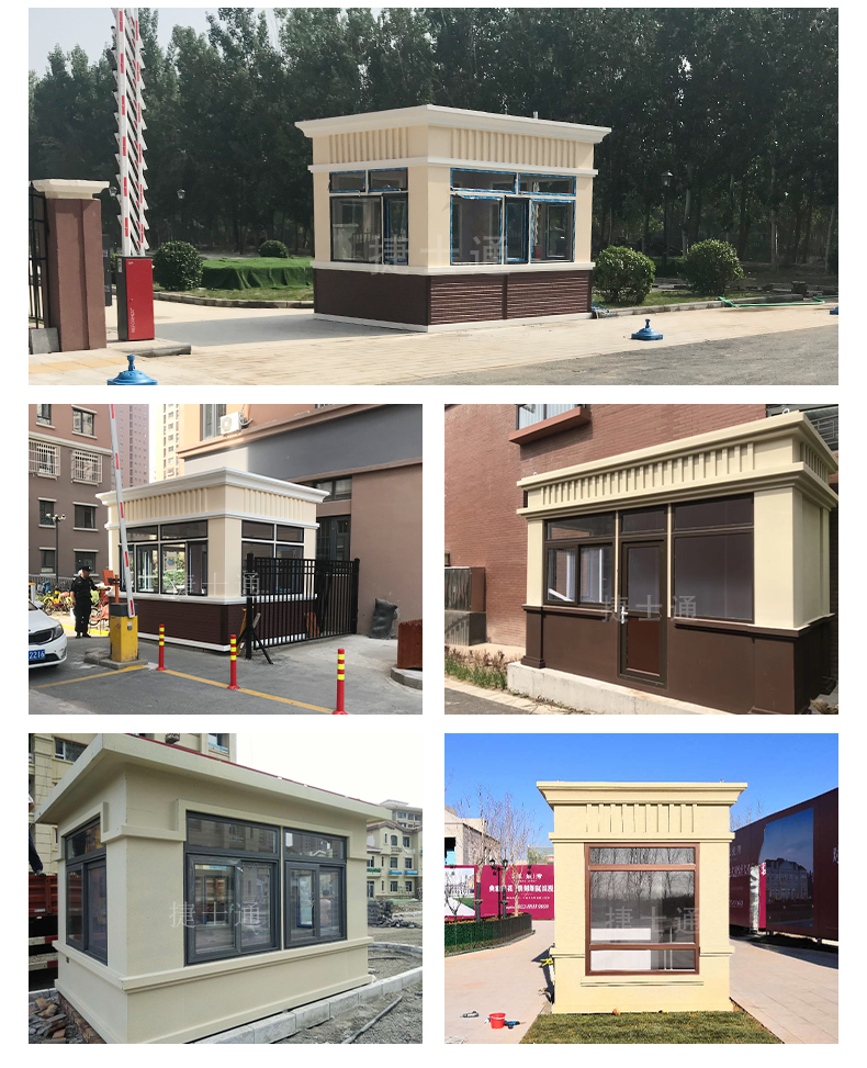 框架為全鋼骨架,外墻板為先進的建筑外墻板,具體完好的保溫隔熱性能,是以往外墻板材料無法比擬的,正常使用年限10-20年之久,可謂是保安崗亭中的上品。